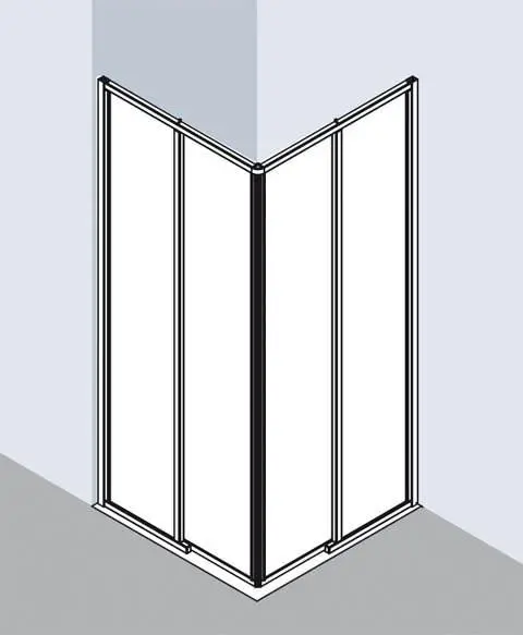 - Gerahmter Eckeinstieg mit zwei Gleittürsegmenten, je nach einer Seite öffnend und zwei Festfeldern.